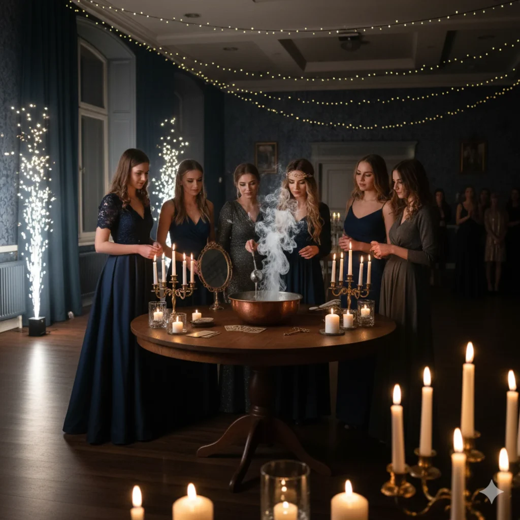 1. Andrzejki z nutą balową Zamiast klasycznych wróżb przy stole, można zorganizować magiczny bal andrzejkowy, gdzie goście przychodzą w kostiumach inspirowanych wróżbitami, czarownicami czy postaciami z baśni. Wróżby mogą być częścią programu — np. lanie wosku przy stołach ustawionych wokół parkietu, a następnie wspólny taniec w rytm muzyki. Efekty świetlne, takie jak fontanny iskier, mogą podkreślić kluczowe momenty.