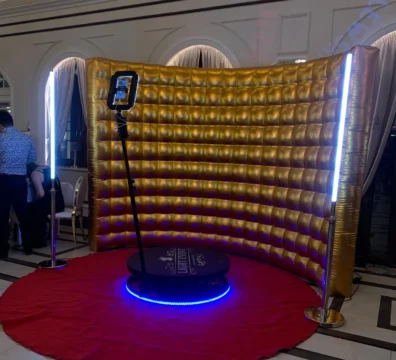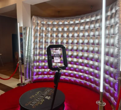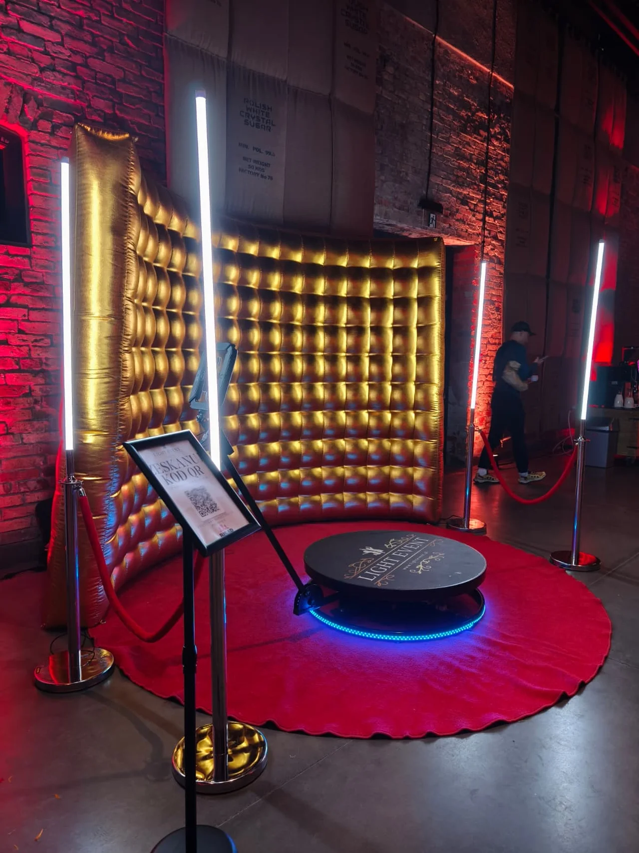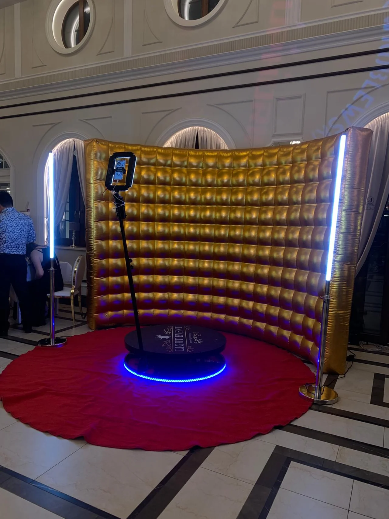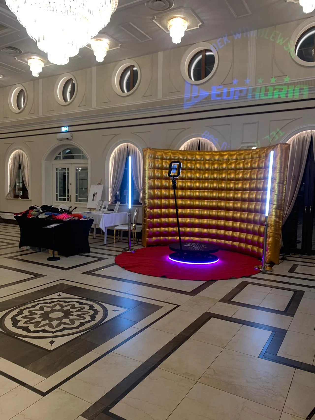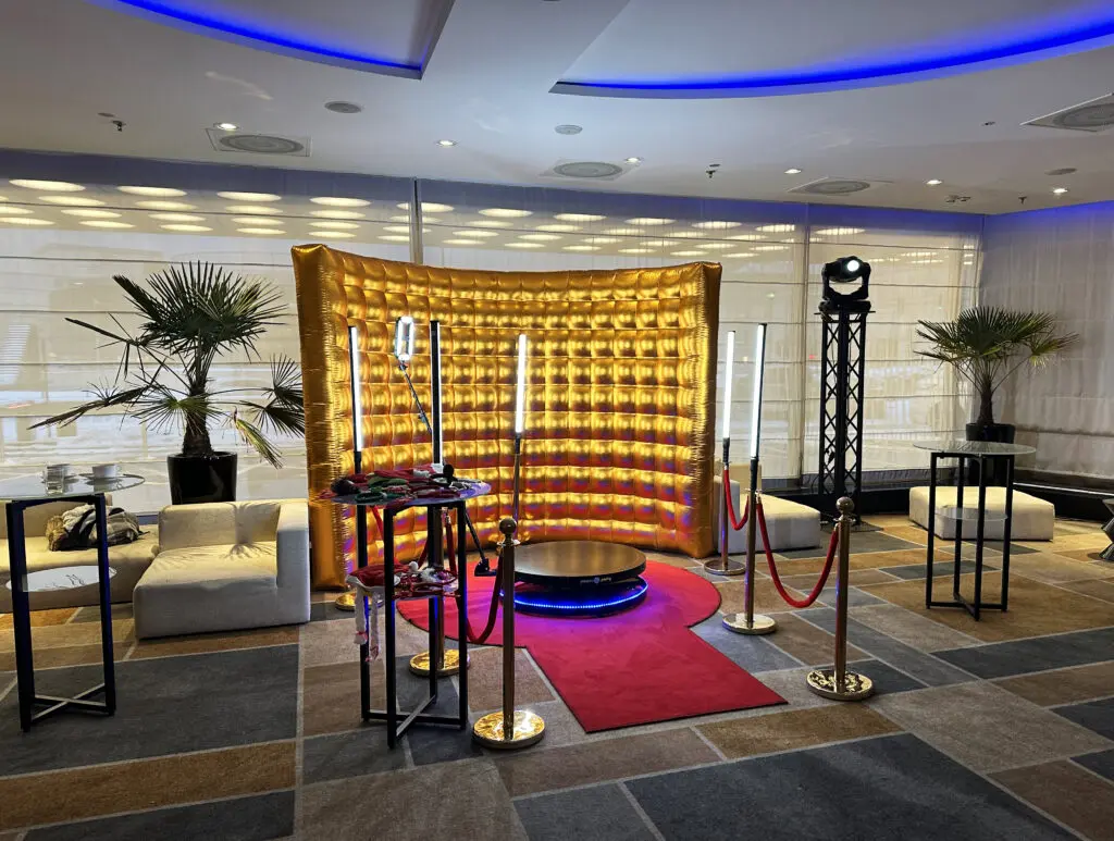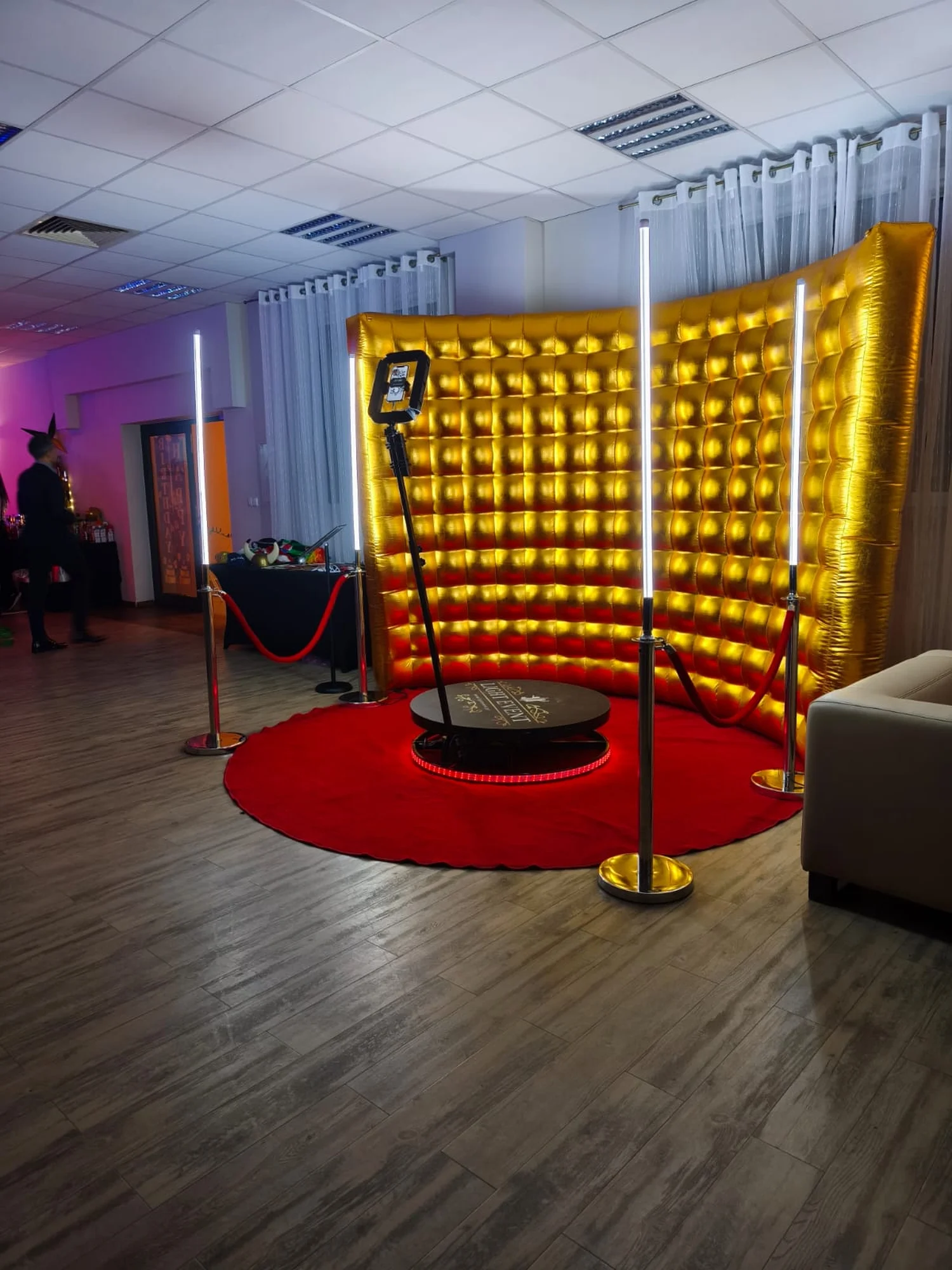 W naszej ofercie znajdziesz eleganckie, dmuchane tła w trzech wariantach kolorystycznych: srebrnym, złotym i różowym. Do tego czarny lub czerwony dywan, który podkreśli wyjątkowy charakter Twojego wydarzenia. Dzięki temu każda sesja z fotobudką 360 zyskuje prestiżowy klimat – jak na prawdziwej gali!