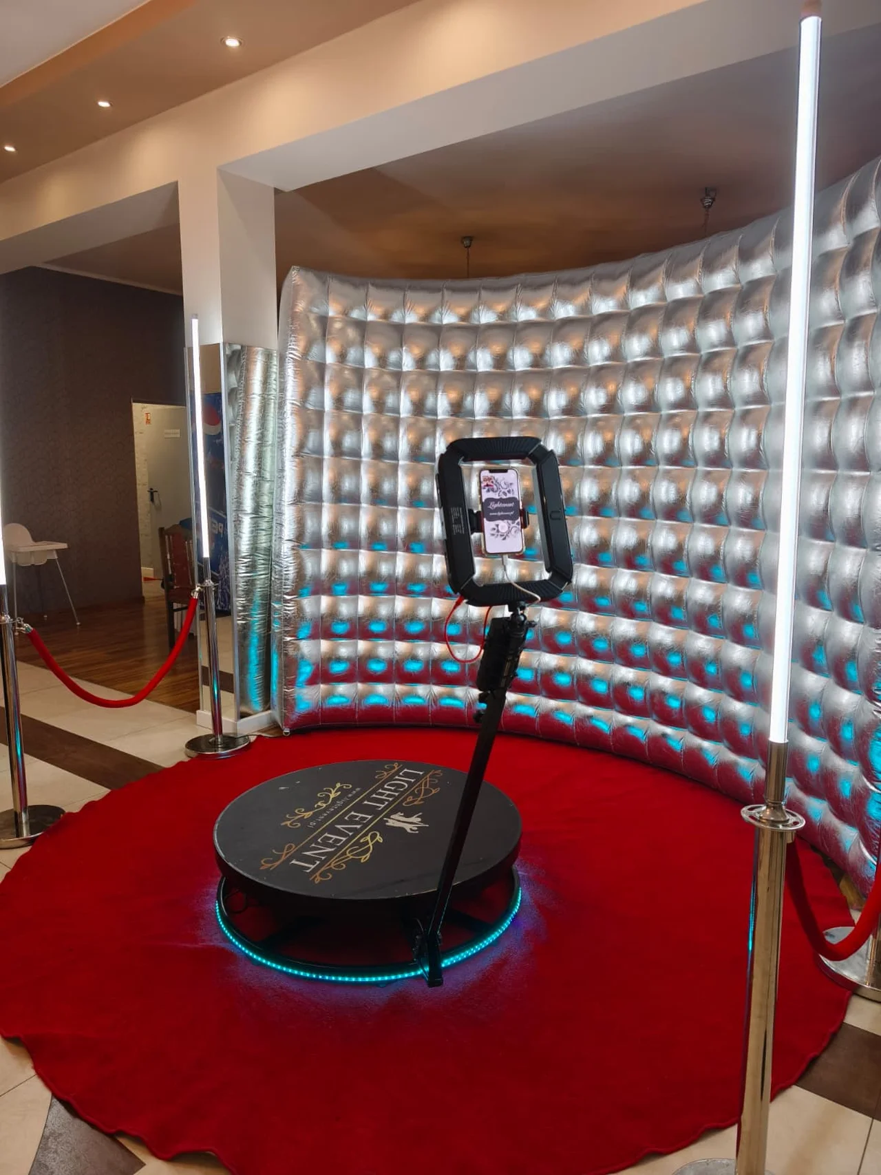 Nasza fotobudka 360 jest nowoczesnym urządzeniem, które wyróżnia się wysoką jakością nagrań oraz łatwością obsługi. W skład oferty wchodzi szeroki wybór dodatków, takich jak personalizowane tła, unikalne efekty świetlne oraz specjalne gadżety. Każdy film z fotobudki może być wzbogacony o efektowne tła i animacje, co sprawia, że nagranie staje się jeszcze bardziej kreatywne i pasuje do charakteru imprezy.