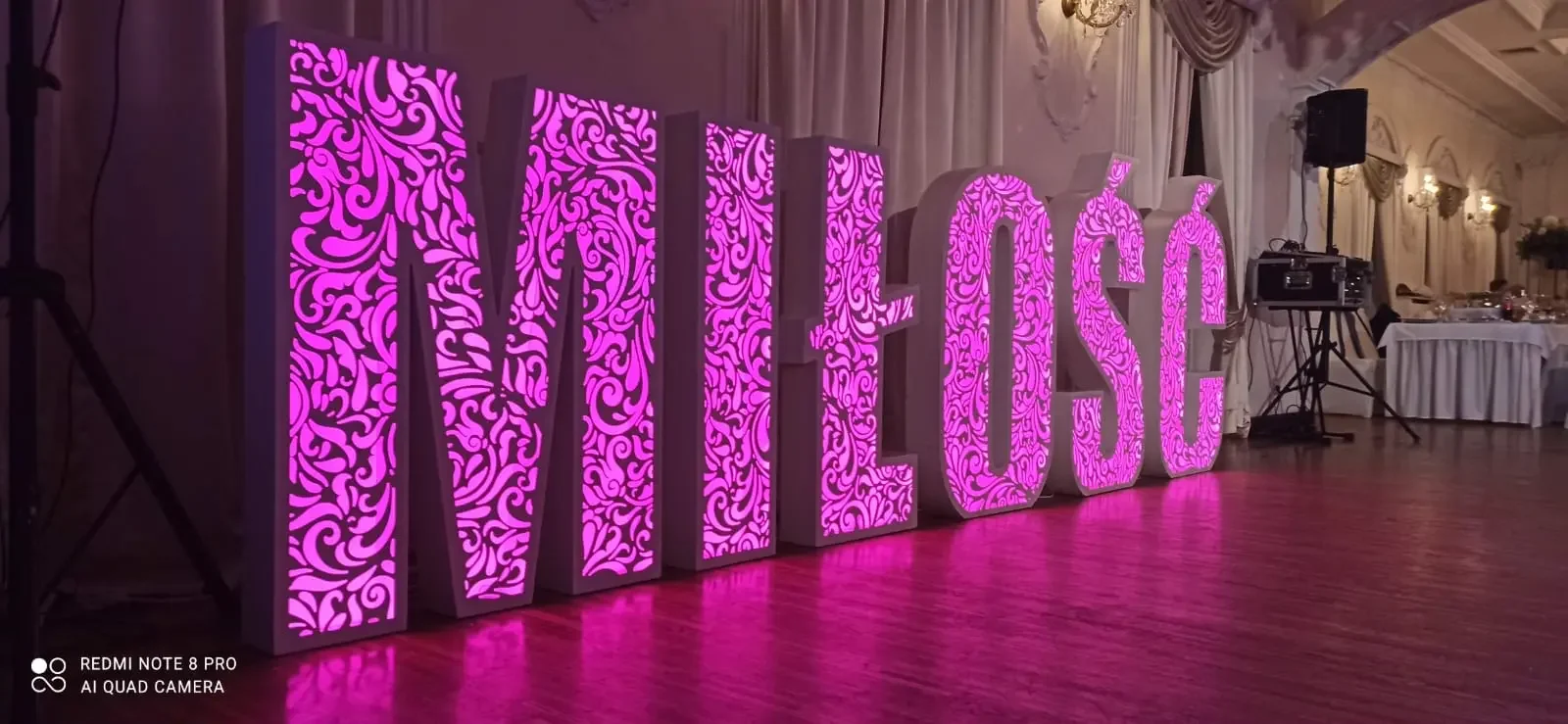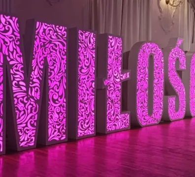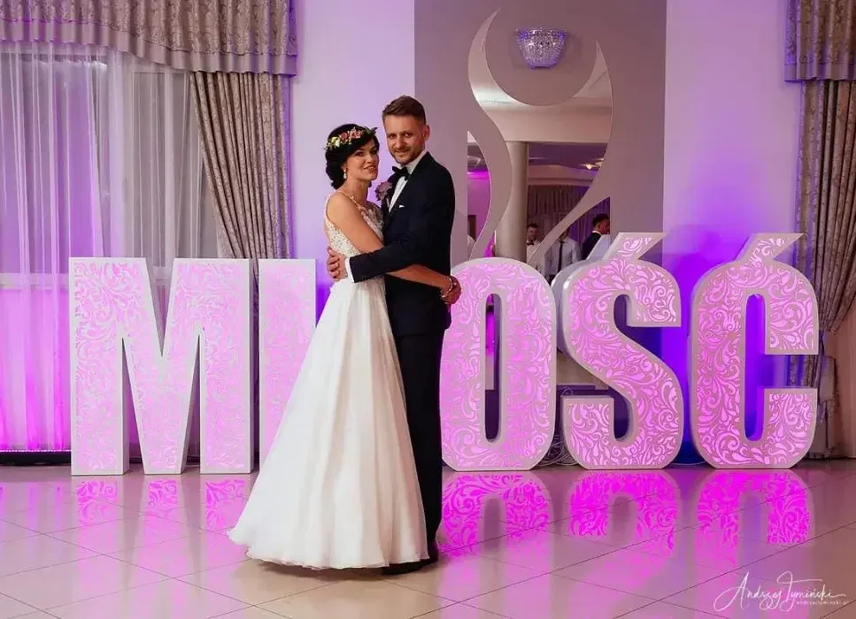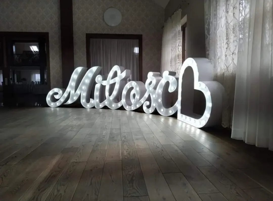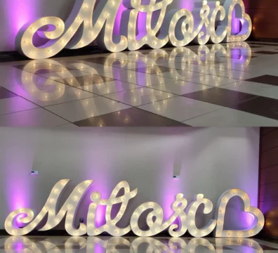 Podświetlane litery tworzą niesamowity efekt wizualny, który przyciąga wzrok i zachwyca gości. Stanowią doskonałe tło do zdjęć, które na długo zostają w pamięci uczestników wydarzenia.