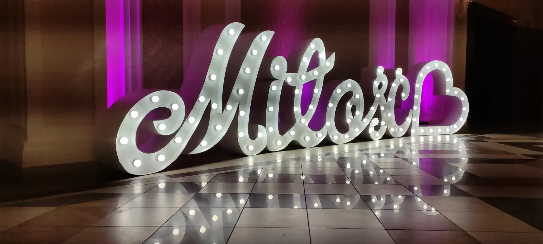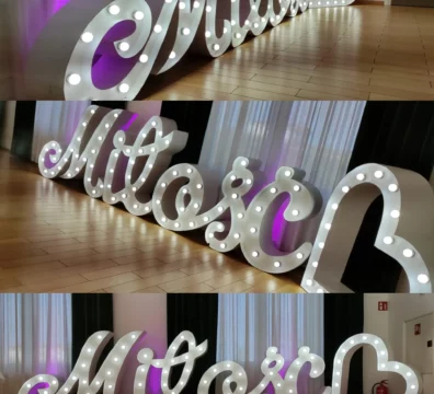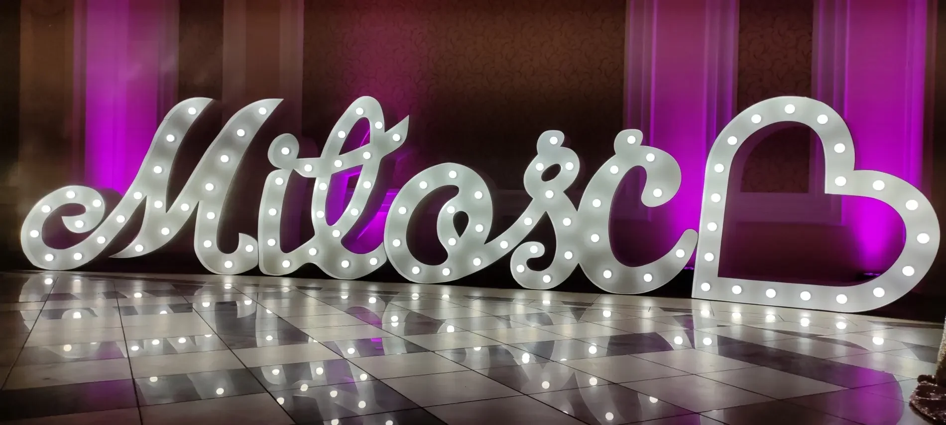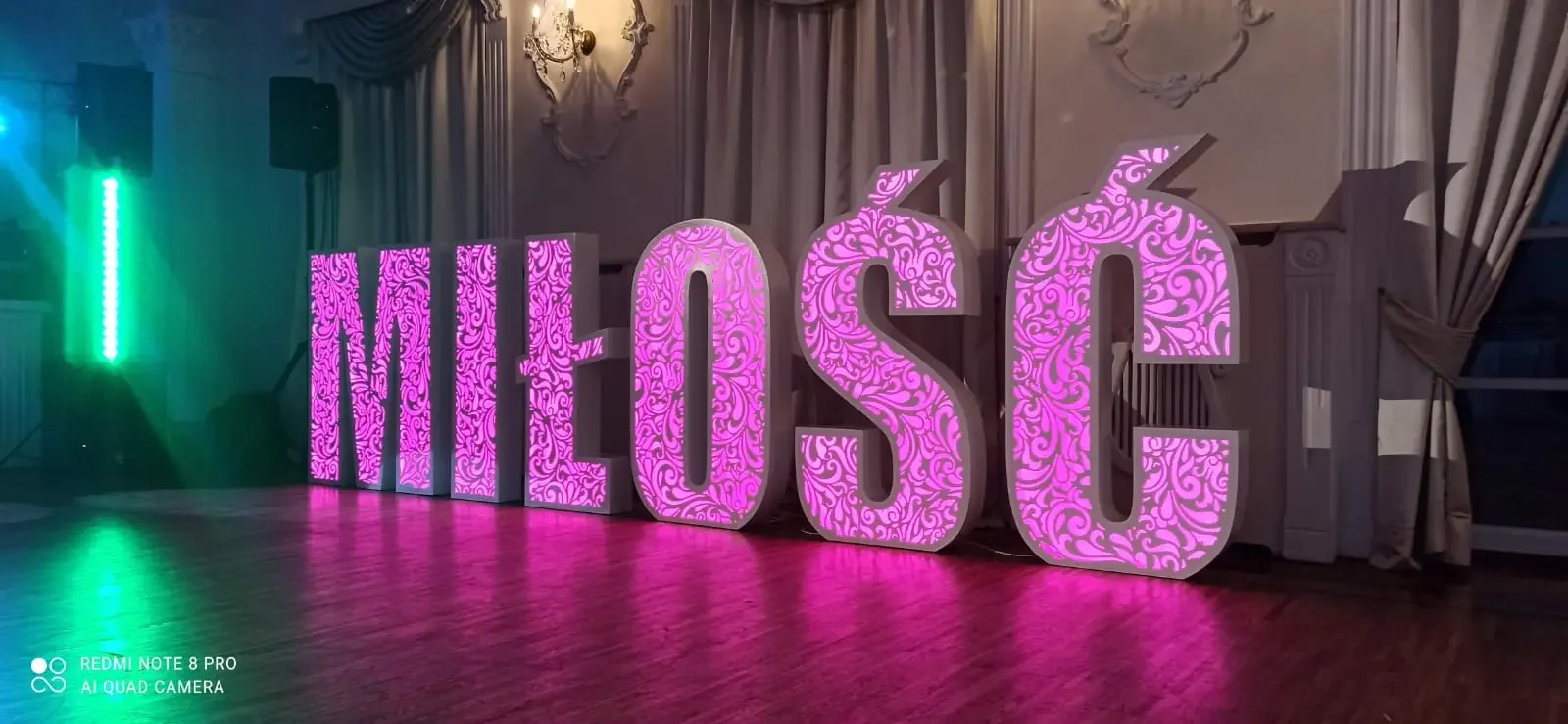 Podświetlane litery tworzą niesamowity efekt wizualny, który przyciąga wzrok i zachwyca gości. Stanowią doskonałe tło do zdjęć, które na długo zostają w pamięci uczestników wydarzenia.