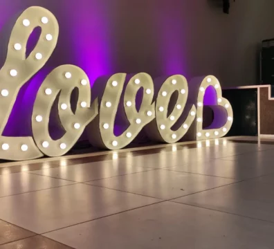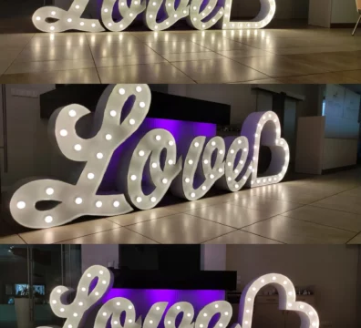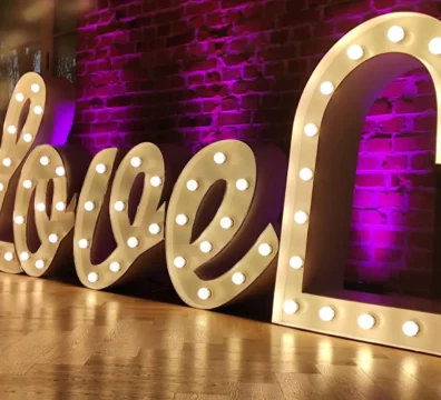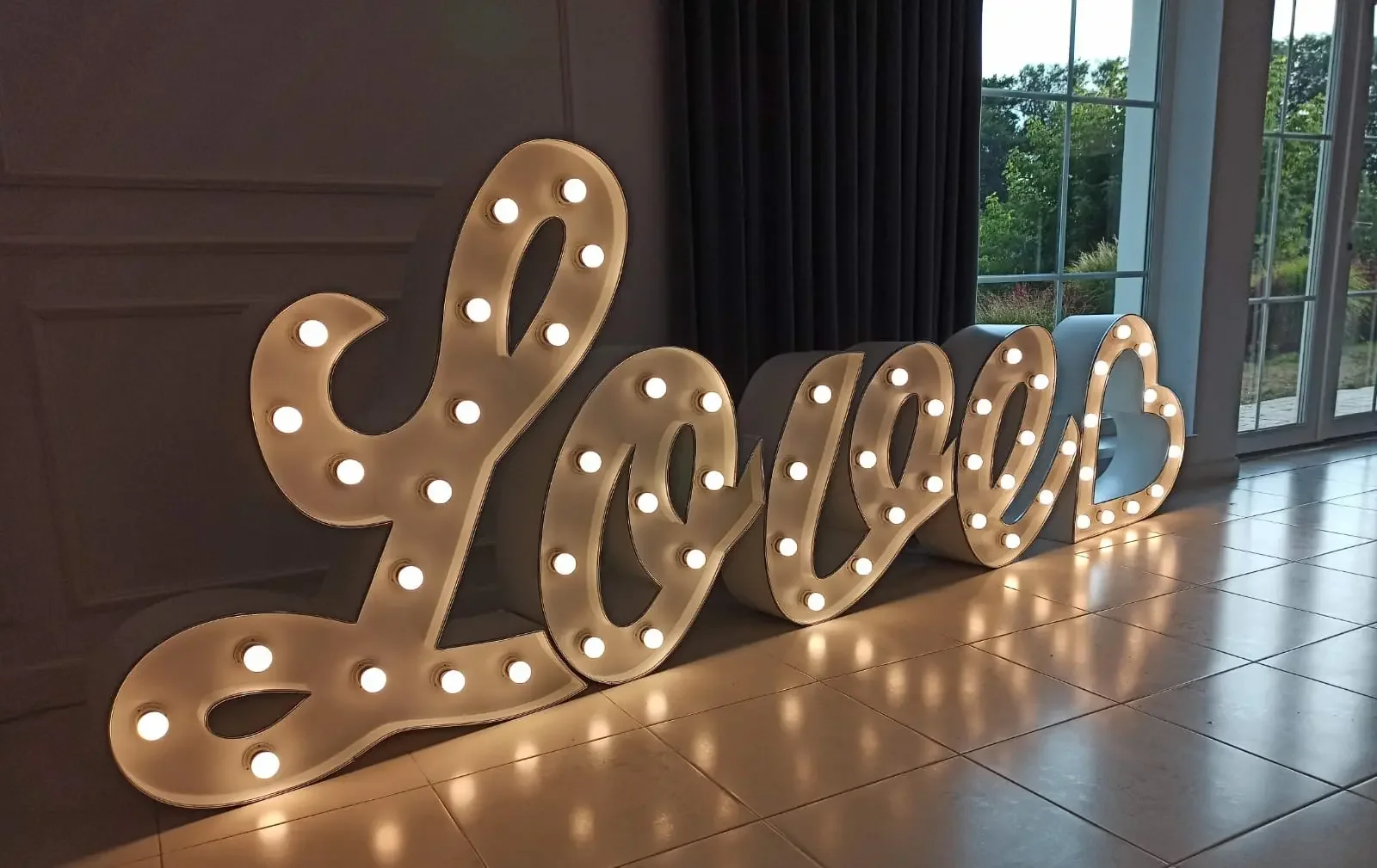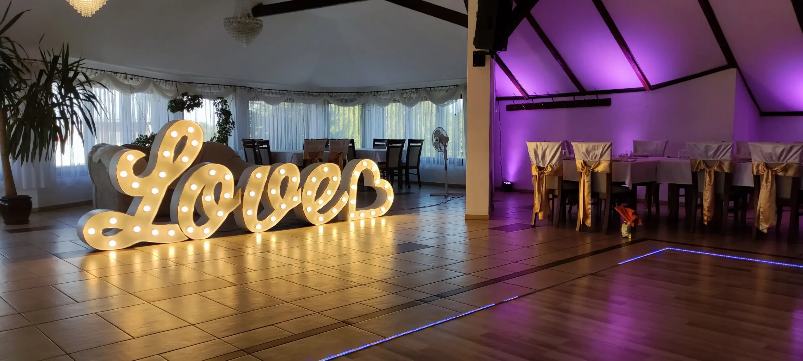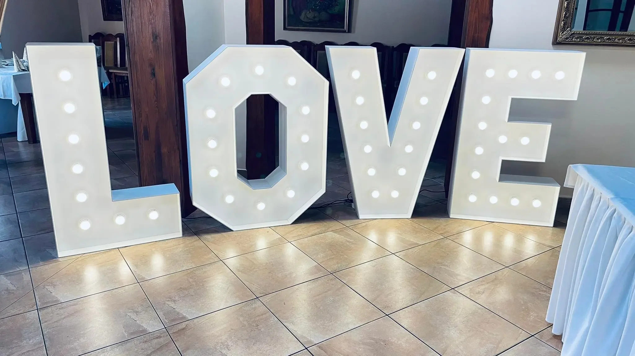 • Romantyczne wesele: Ustawienie liter „LOVE” w centralnym punkcie sali weselnej lub na parkiecie dodaje uroku każdemu przyjęciu.