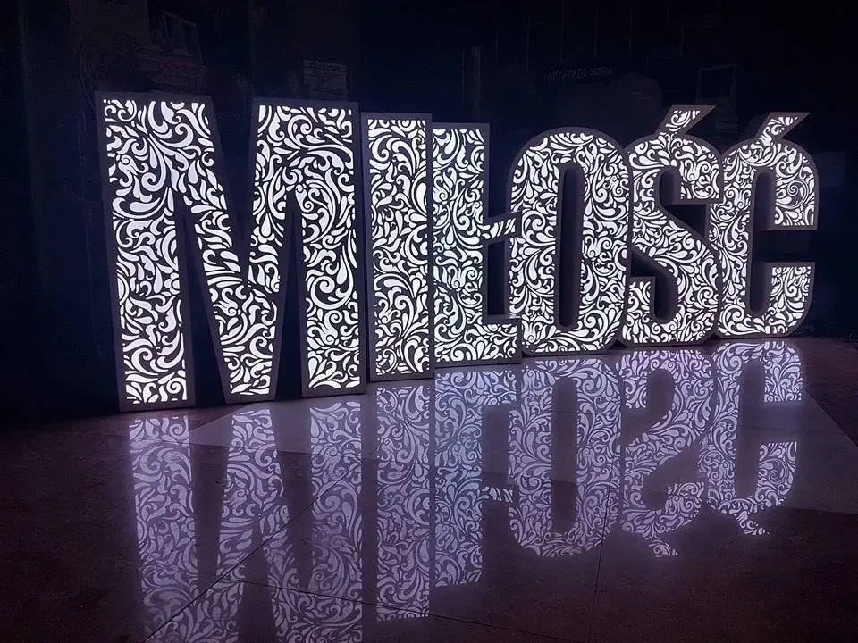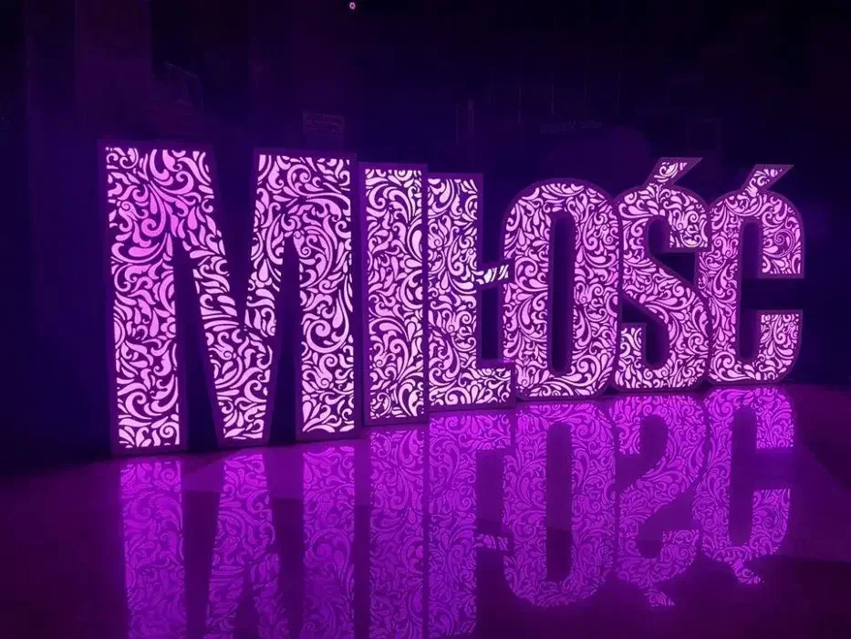 Dzięki możliwości wyboru liter, cyfr i symboli, podświetlane konstrukcje można dostosować do indywidualnych potrzeb klienta. Czy to inicjały młodej pary, nazwa firmy czy motyw przewodni imprezy – możliwości są niemal nieograniczone.