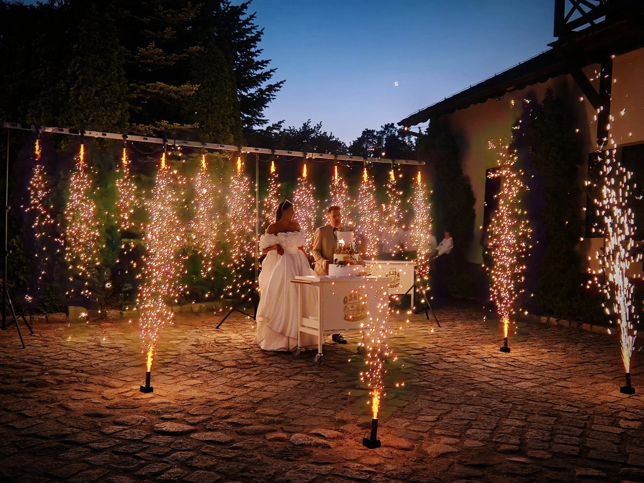 Wodospad iskier przyciąga uwagę i tworzy niezapomniany klimat. Doskonale prezentuje się na zdjęciach i nagraniach wideo – konsultujemy ustawienie z fotografem i wideografem.