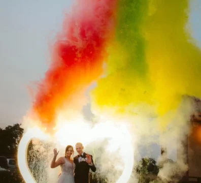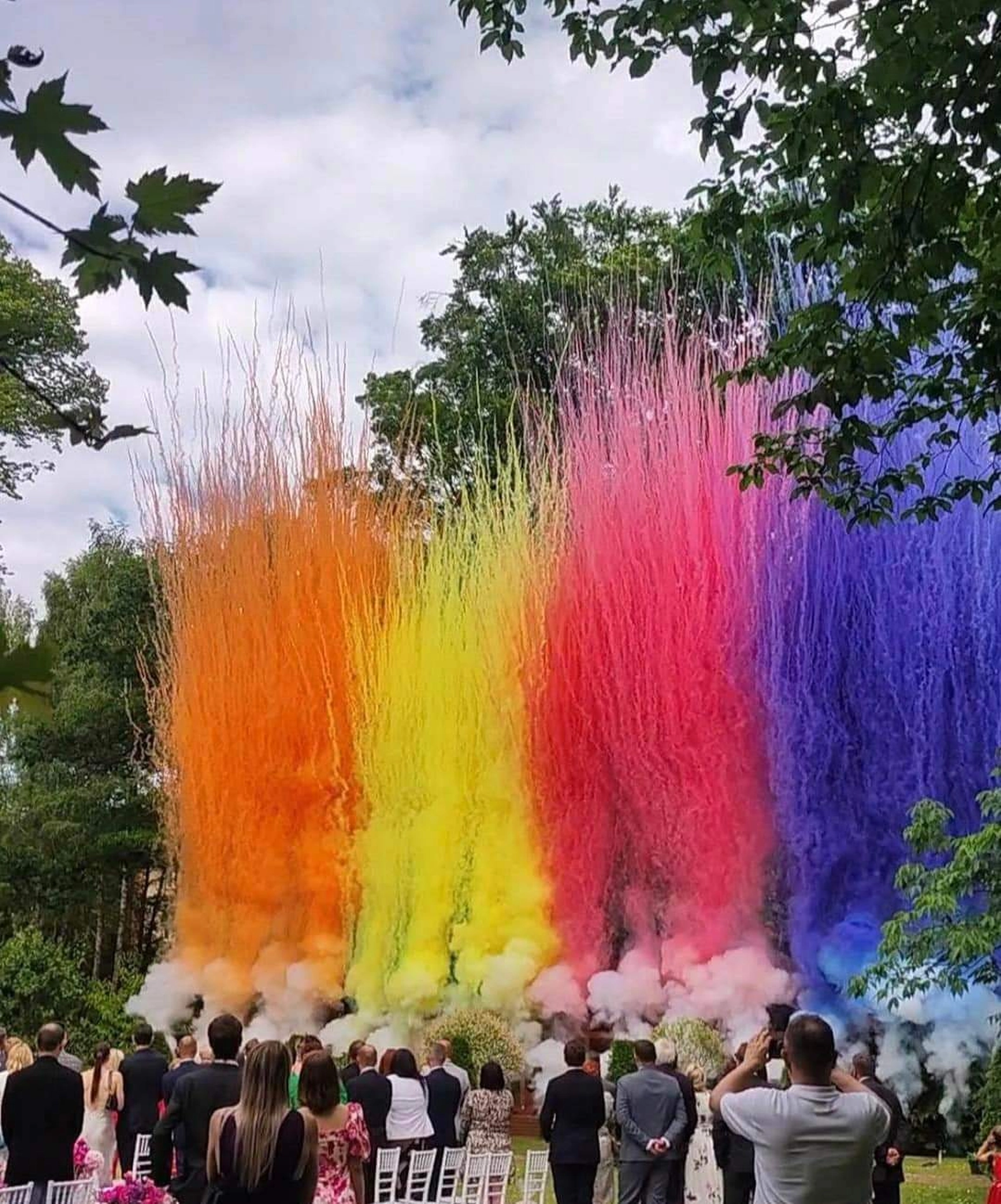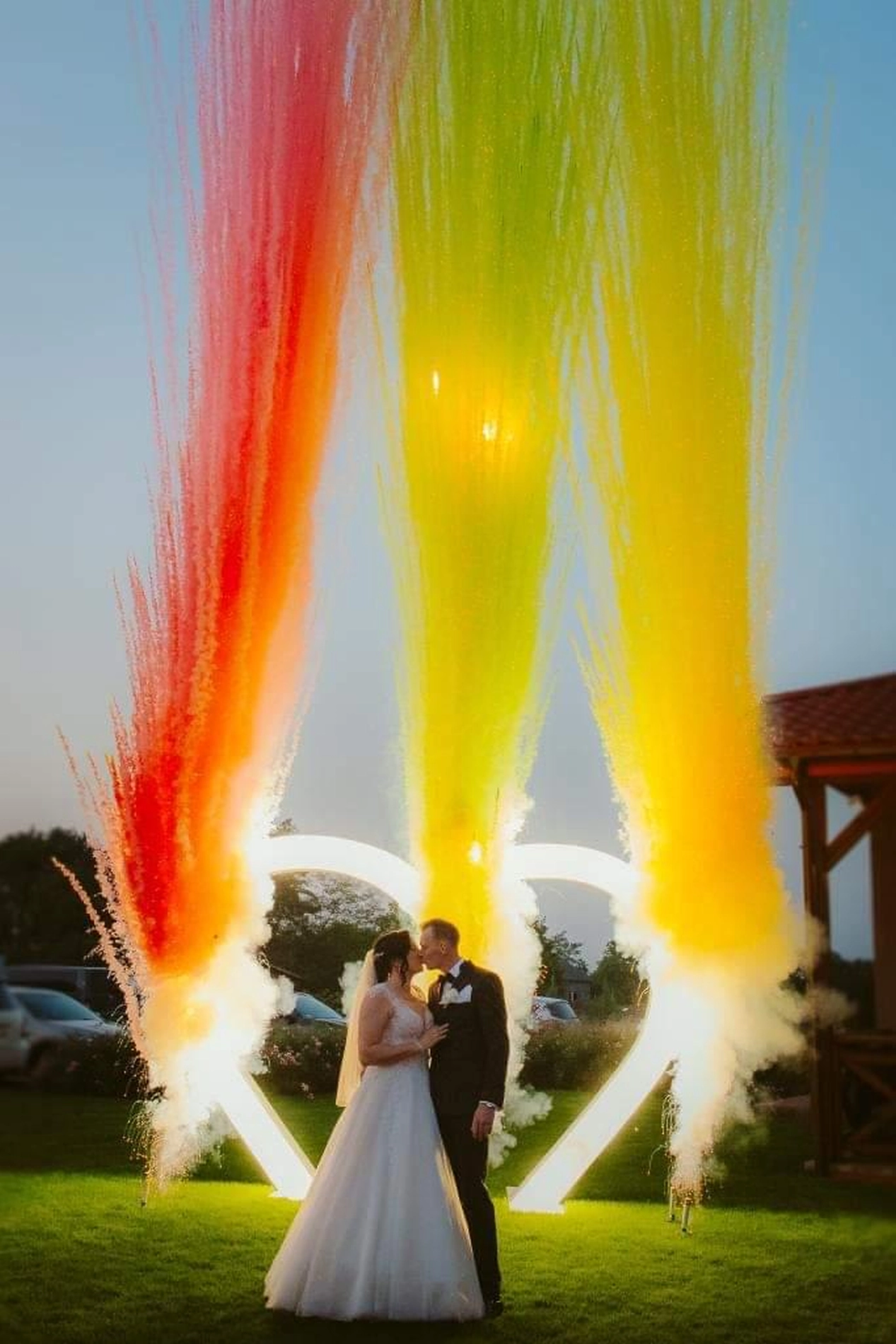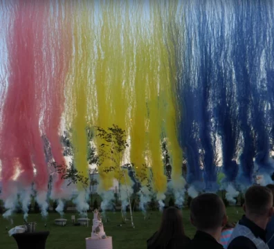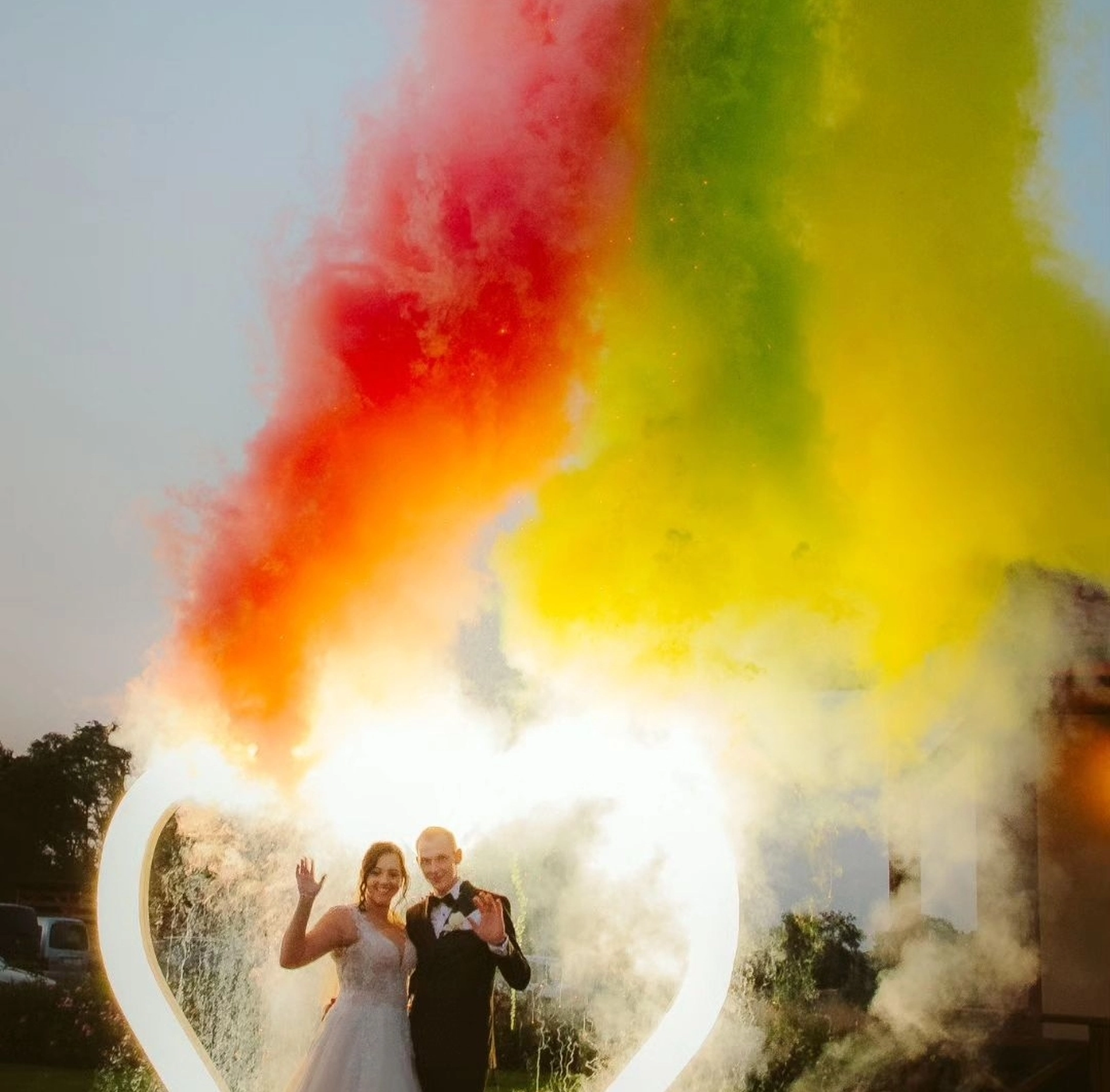 Wystrzałowy dym to intensywny kolorowy wystrzał, który doda energii i koloru Twojemu wydarzeniu. Idealny na wejście pary młodej, wjazd tortu czy zakończenie ślubu plenerowego.