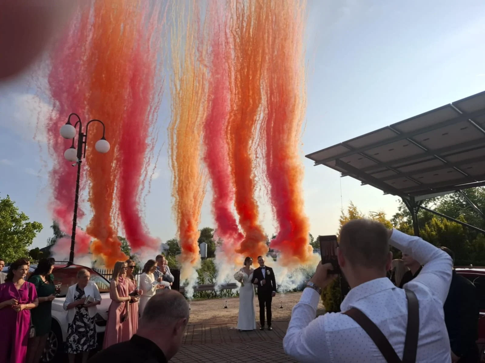 Kolorowe eksplozje dymu tworzą niezapomniane tło dla zdjęć i filmów, wzmacniają emocje chwili i dodają wyjątkowego charakteru każdej uroczystości. To propozycja dla tych, którzy chcą zaskoczyć gości i wprowadzić do swojej imprezy nutę spektakularnej energii – z efektem „wow” gwarantowanym.